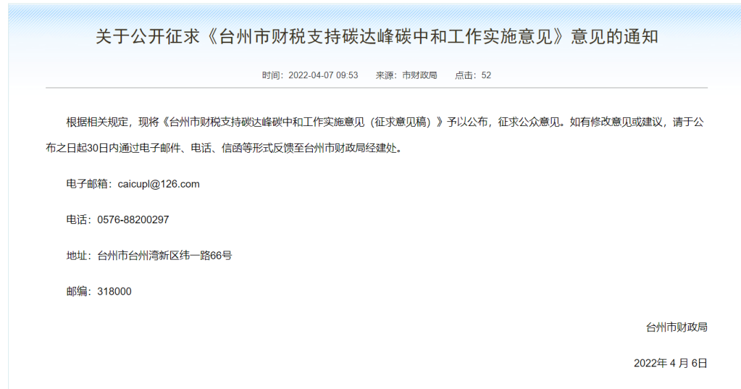 近(jìn)日(rì),浙江省台州市(shì)發布β₽了(le)關于公開(kāi)征求《台州市(shì)财稅支持碳達峰碳中和₩ (hé)工(gōng)作(zuò)實施意見(jiàn¥>↕☆)》意見(jiàn)的(de)通(tōngβ"→)知(zhī)。