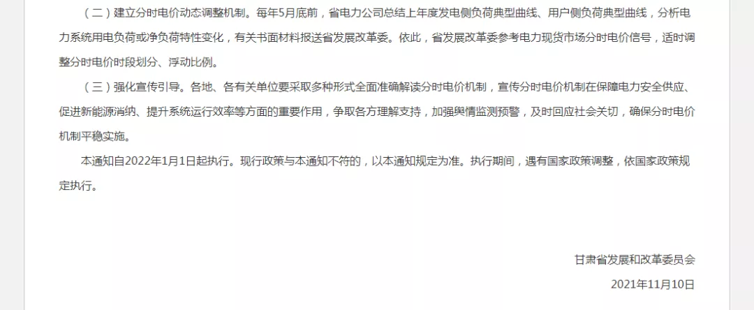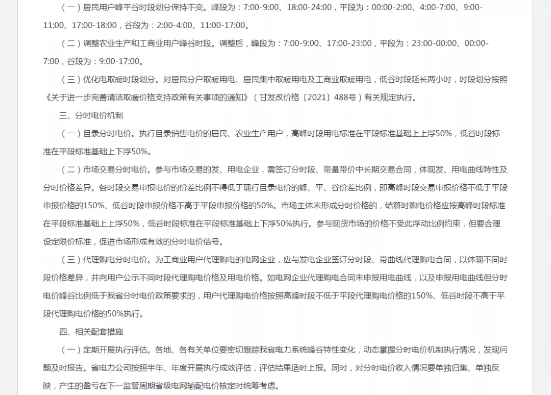 甘肅省發改委明(míng)确,自(zì)2022年(nián)起,全省工(gōn$®g)商業(yè)電(diàn)力以及居民(mín)電(diàn)動®£汽車(chē)充電(diàn)樁執行(xíng)分(fē®₩€✘n)時(shí)電(diàn)價,高(gāo)峰時(sh₽♥<í)段用(yòng)電(diàn)标準在平段标準基礎上(shàng)上(sε λhàng)浮50%,低(dī)谷時(shí)段标準在平段标準基礎上(shàng)下(xi≈♦÷à)浮50%。
