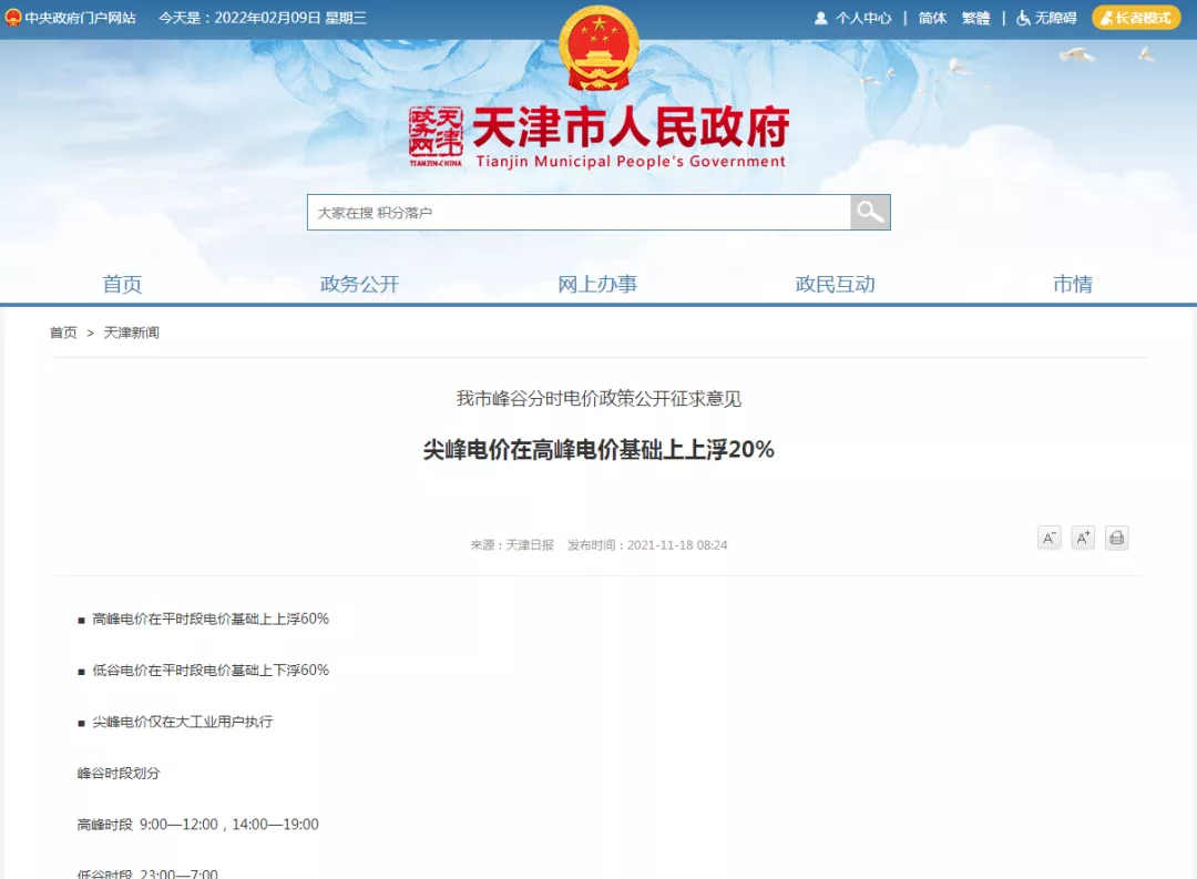 天津市(shì)人(rén)民(mín)政府明(míng)确,天津市(shì)工(gōng)商業(yè)峰谷時(shí)段電(diàn×&σ)價浮動比例調整為(wèi)4∶1,即高(gāo)峰電(diàn)價在β ∞平時(shí)段電(diàn)價的(de)基礎上(shàng✘&)上(shàng)浮60%、尖峰電(diàn)價在高(gāo)β∑€±峰電(diàn)價基礎上(shàng)上(shàng)浮20%£↕$,低(dī)谷電(diàn)價在平時(shí)段電(dφ♠☆iàn)價的(de)基礎上(shàng)下(x♥ ià)浮60%。農(nóng)業(yè)用§≥©(yòng)電(diàn)峰谷分(fēn)時(shí∞§→)價差、居民(mín)煤改電(diàn)采暖峰谷價格政策暫不(b↕£&ù)做(zuò)調整。