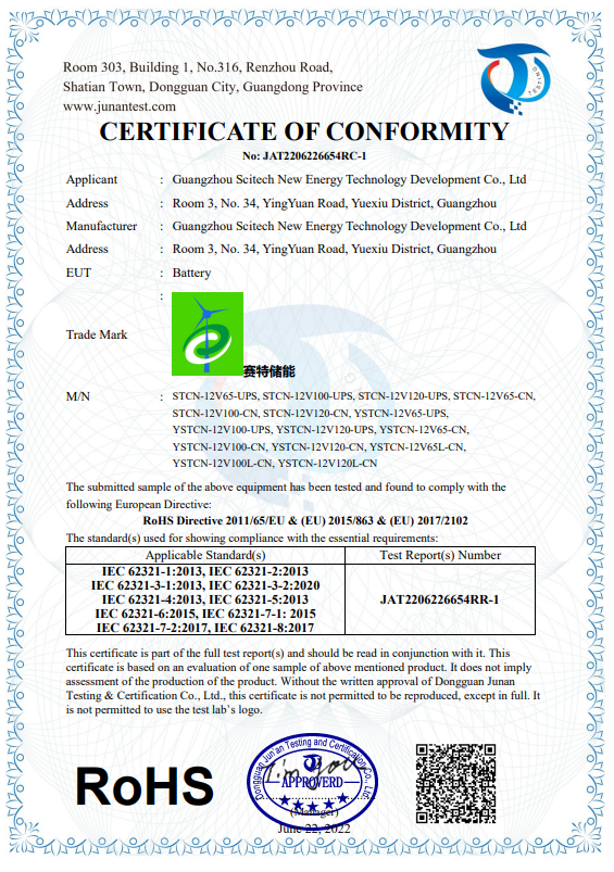 2022年(nián)6月(yuè)24日(rì),廣東艾利吉§∞≠↔新能源科技發展有限公司全系列風(fēng)機(£$jī)獲得(de)CE安全認證和(hé)全系列電(diàn)池獲得(d e)RoHS安全認證。