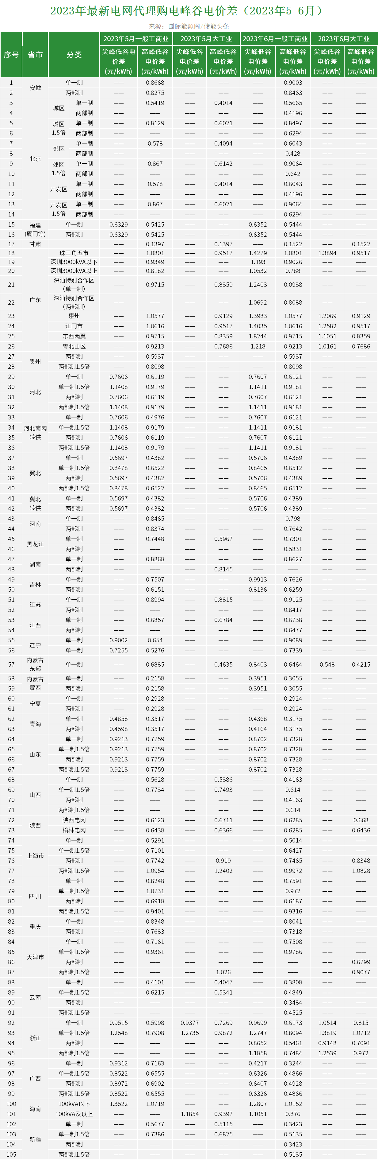2023年(nián)6月(yuè)全國(guó)各地(dì)已發布電(d≠$♣←iàn)網企業(yè)代理(lǐ)購(gòu)電(diàn)價格。