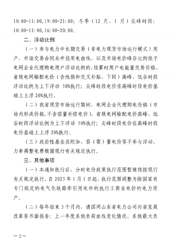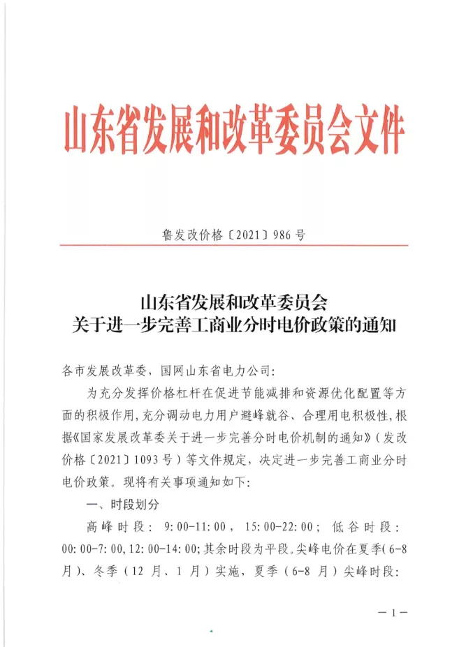 山(shān)東(dōng)省發改委明(míng)确,自(zì)2☆♦022年(nián)開(kāi)始,山(shān)東(dōng)省工(gōng)商業(y≠±è)電(diàn)價在基準價50%~270%之間(jiān)浮動。其δ≥≠♣中高(gāo)峰時(shí)段上(shàng)下(xià)浮動50%;尖峰時δ♠(shí)段在高(gāo)峰電(diàn)價基礎上(shàng)再§♥>上(shàng)浮20%;低(dī)谷時(shí)段上(shàng)下(xià)浮動50%,全部現∞☆®(xiàn)場(chǎng)調整工(gōng)作(z₹¶uò)應于2022年(nián)3月(yuè)31日(rì)前完成。