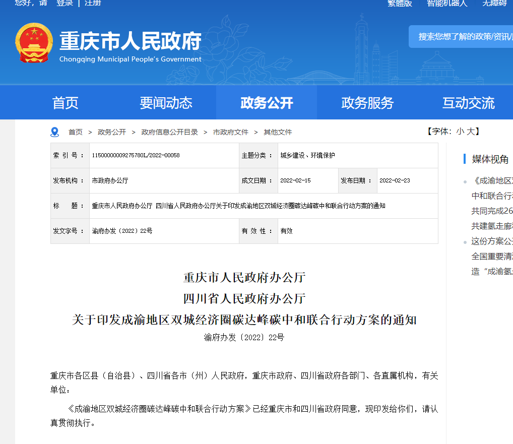 成渝地(dì)區(qū)雙城(chéng)經濟圈碳達峰碳中和(hé)聯合行(xíng)動方案